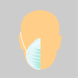 4. 아래의 이미지와 같이 마스를 반으로 접어 착용한 것처럼 얼굴에 대고 페이스 아이디를 등록해주세요. 먼저 한쪽 얼굴을 등록하세요. 마스크로 반이 가려져 있기 때문에 잘 인식을 안 할 수도 있습니다. 얼굴을 뱅뱅 돌려서 인식이 될 때까지 돌려주세요.