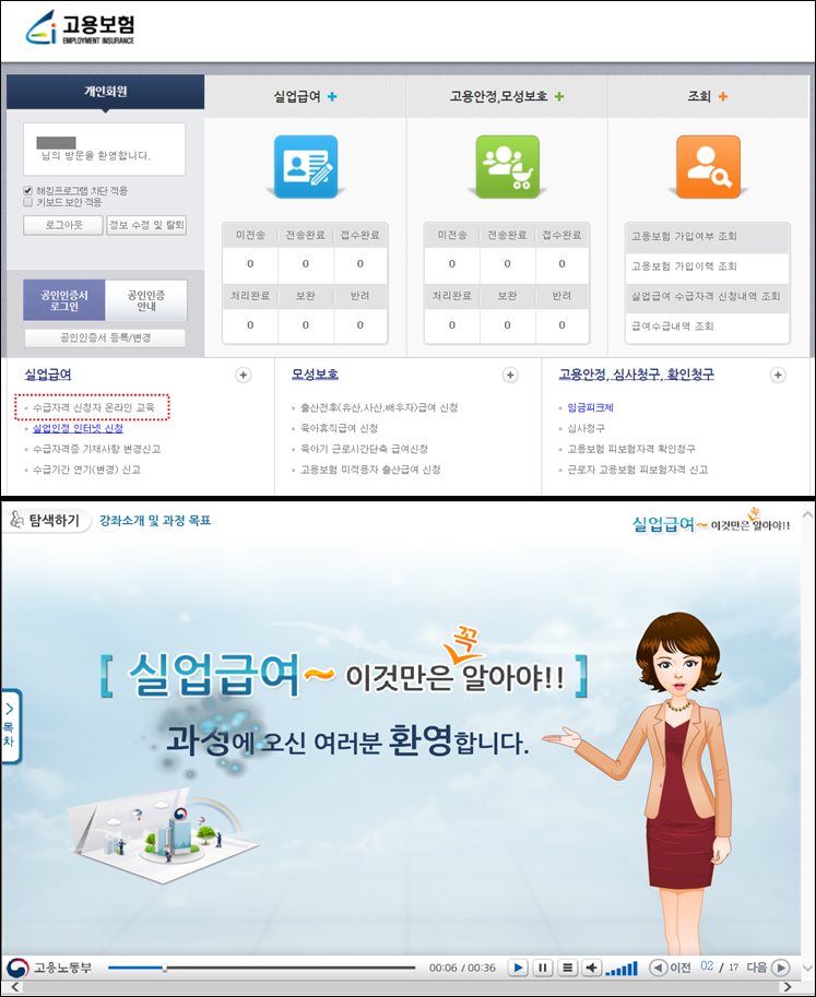 2. 고용보험 홈페이지에서 수급자격 온라인 교육 시청.